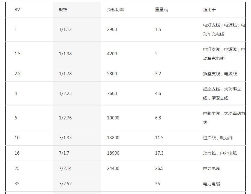 BV是由一根或者幾十根粗銅絲構(gòu)成的導(dǎo)體,整體偏硬,適合使用在主線或者支線。